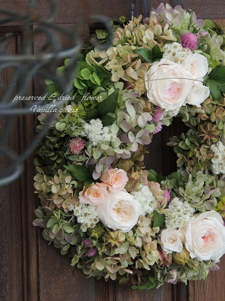 バニラローズのリースはふっくらとしたボリュームがあることなんです。
