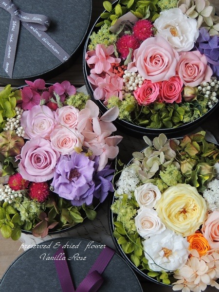 新作のBOXアレンジメント3点を追加しました! | プリザーブド&ドライフラワー バニラローズ