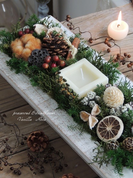 ウッドフレームのキャンドルアレンジメントをアップしました。 | プリザーブド&ドライフラワー バニラローズ