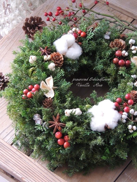 クリスマスリースを追加しました! | プリザーブド&ドライフラワー バニラローズ