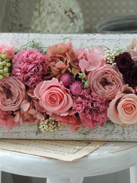 新作のロングフレームのアレンジメントもアップしました! | プリザーブド&ドライフラワー バニラローズ