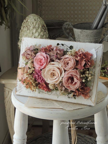 新作のウッドフレームのアレンジメントをアップしました! | プリザーブド&ドライフラワー バニラローズ