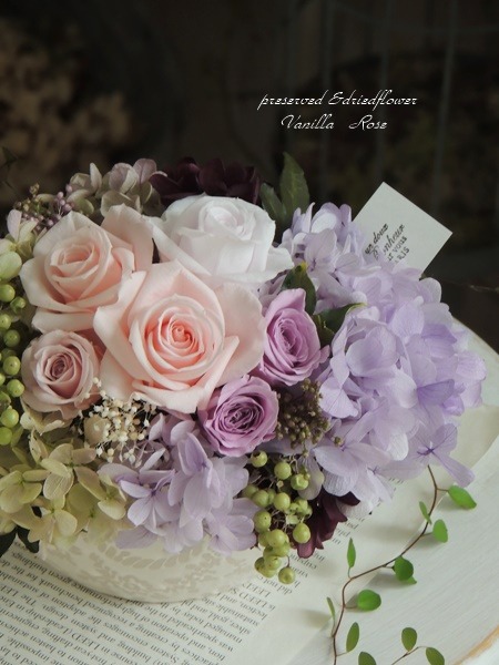 新作のオーバルアレンジメントをアップしました! | プリザーブド&ドライフラワー バニラローズ