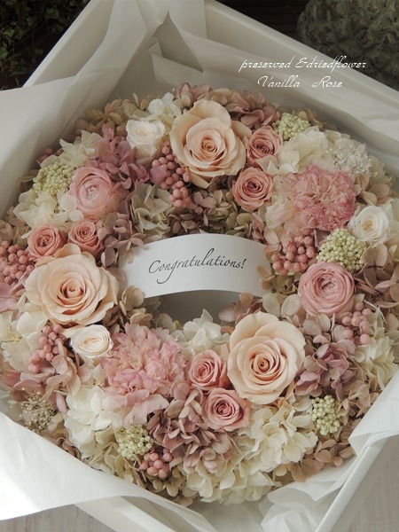 新作のフレームアレンジメントとアンティークピンクのリースを追加しました! | プリザーブド&ドライフラワー バニラローズ