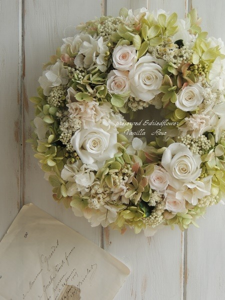新作・ご結婚祝いやサロンオープン祝いなどにおすすめのリース | プリザーブド&ドライフラワー バニラローズ