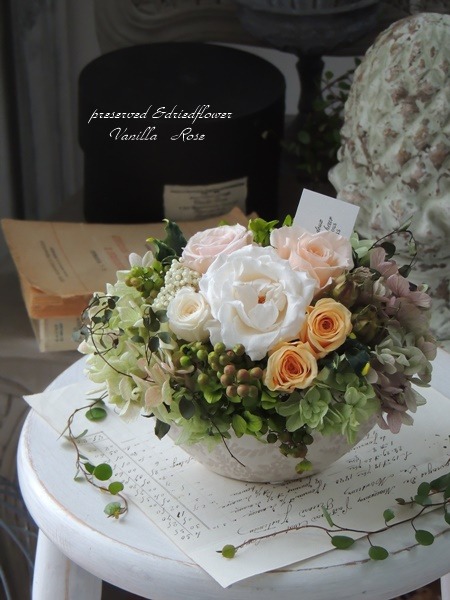 新作・オーバルアレンジメントほか1点アップしました! | プリザーブド&ドライフラワー バニラローズ