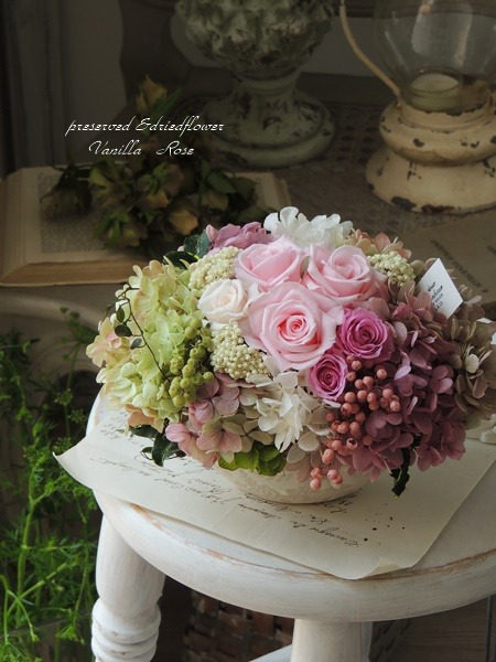 新作のオーバルアレンジメントをアップしました! | プリザーブド&ドライフラワー バニラローズ