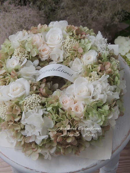 ホワイトグリーンのリースを再販しました! | プリザーブド&ドライフラワー バニラローズ
