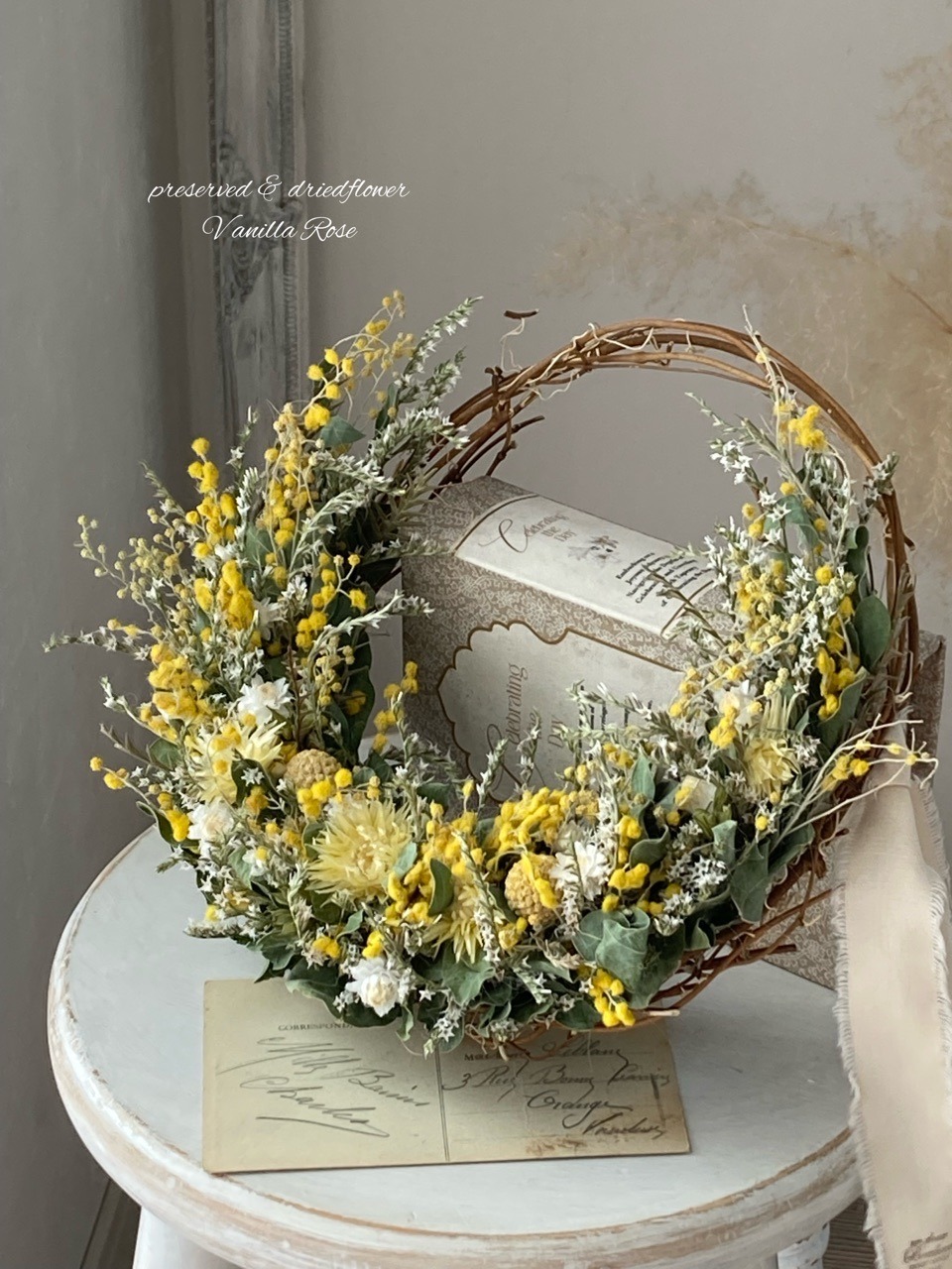 【数量限定】ドライミモザのハーフリースをアップしました! | プリザーブド&ドライフラワー バニラローズ