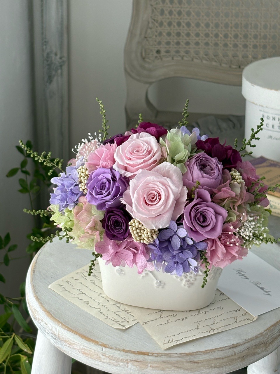 【新作】古希祝いや喜寿のお祝いにおすすめのアレンジメント | プリザーブド&ドライフラワー バニラローズ