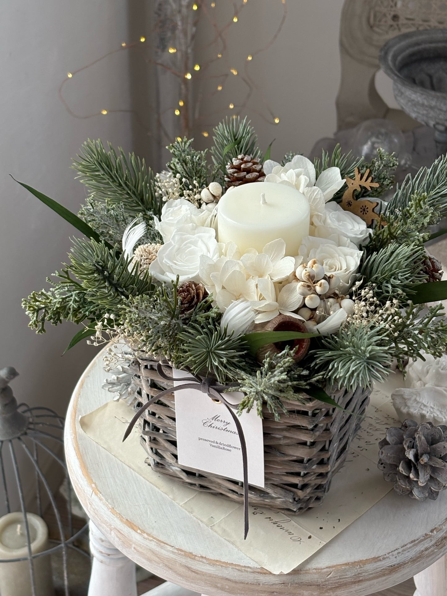 【2個限り】クリスマスキャンドルアレンジメント/スノーホワイト/クリスマスアレンジメント/プリザーブドフラワー/アーティフィシャルグリーン/ラッピング無料/【お届け日時指定可能】【沖縄県及び離島へのお届け不可】】