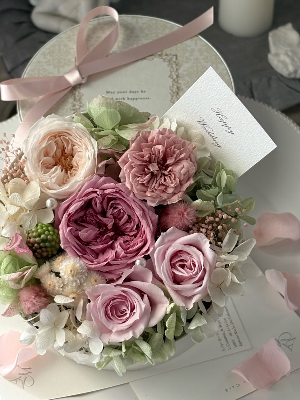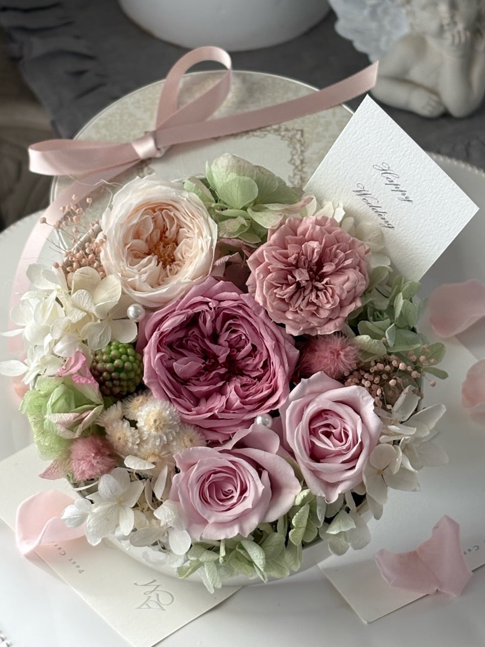 BOXフラワーギフト/プリザーブドフラワー/スイートピンク/結婚祝い/プロポーズのお花/成人のお祝い/お誕生日のお花/バースデーギフト/ボックスアレンジメント【お届け日時指定可能】【沖縄県・離島へのお届け不可】