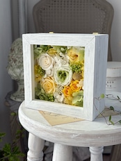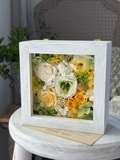 ボックスフレームのアレンジメント/プリザーブドフラワー/イエローグリーン/クリスマスギフト/結婚祝い/新居祝い/送別のお花/開店祝い/開業祝い/記念日のお花/サロンオープン祝い/お誕生日のお花/フラワーギフト/ギフト包装無料【お届け日時指定可能】【沖縄県・離島へのお届け不可】