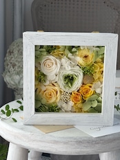 フレームのアレンジメントはプリザーブドフラワーならではのアレンジメント。