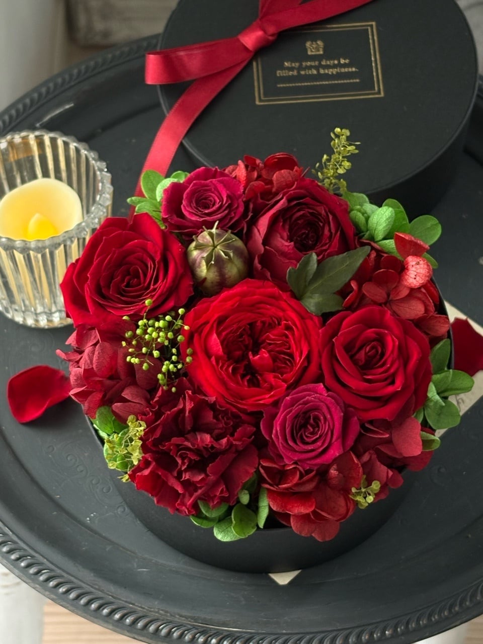 BOXフラワーギフト/プリザーブドフラワー/グラマラスレッド/ボックスアレンジメント/バレンタインデー/還暦祝い/お誕生日のお花/送別のお花/退職祝い/フラワーギフト【お届け日時指定可能】【沖縄県・離島へのお届け不可】