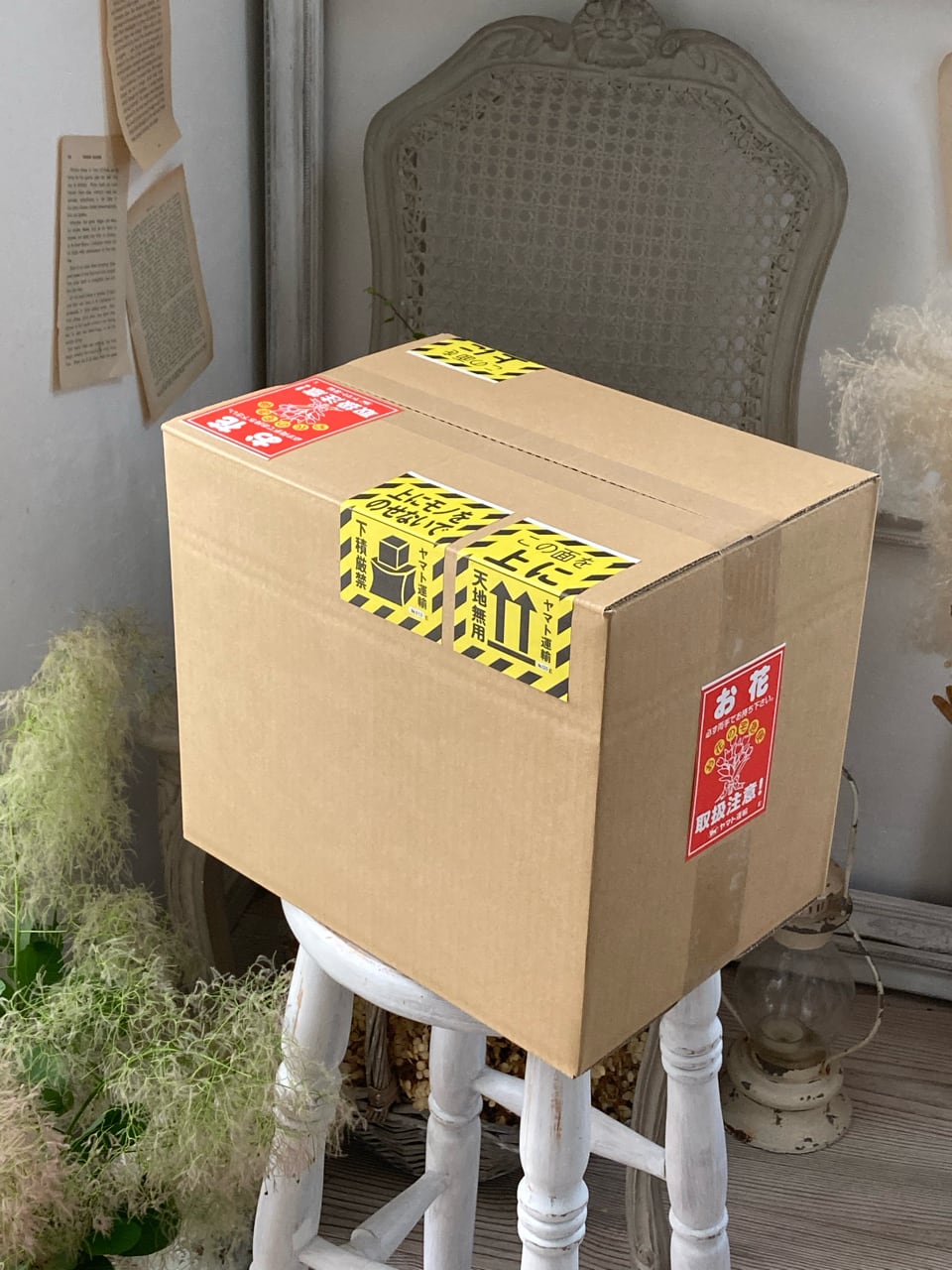 ご注文いただきましたアレンジメントは、お花の雰囲気に合わせたペーパー等でラッピングし専用の段ボール箱にお入れして発送いたします。