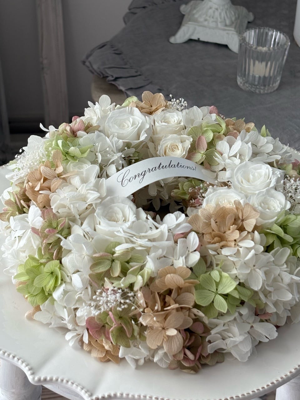 画像のようにお皿に乗せてテーブルリースにしても素敵です。